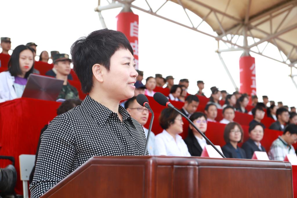 校友代表、 沈阳市政集团公司副总经理、市政集团设计院,高辉院长讲话。她提到,交专人已遍布交通建设行业的各个领域,上至厅级领导、下到企业高管,再到项目技术能人,无处不在。她对全体新生提出期望,既然选择了交专,那就在这里奋进,在这里拼搏,希望你们不负青春、不负韶华!