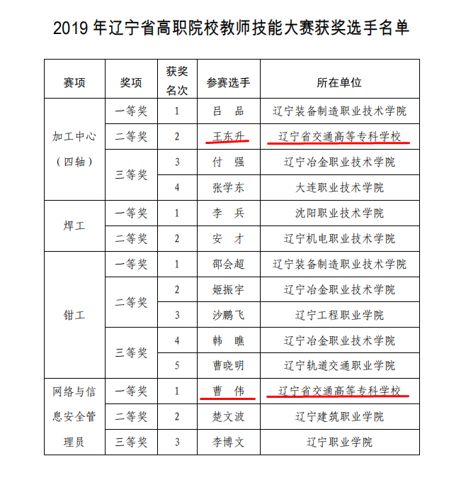 由辽宁省教育厅主办的辽宁省高职院校教师技能大赛暨辽宁省职工技能大赛选拔赛在辽宁装备制造职业技术学院落下帷幕。经过激烈的角逐,我校曹伟老师获得网络与信息安全管理员赛项冠军,王东升老师获加工中心(四轴)赛项二等奖。