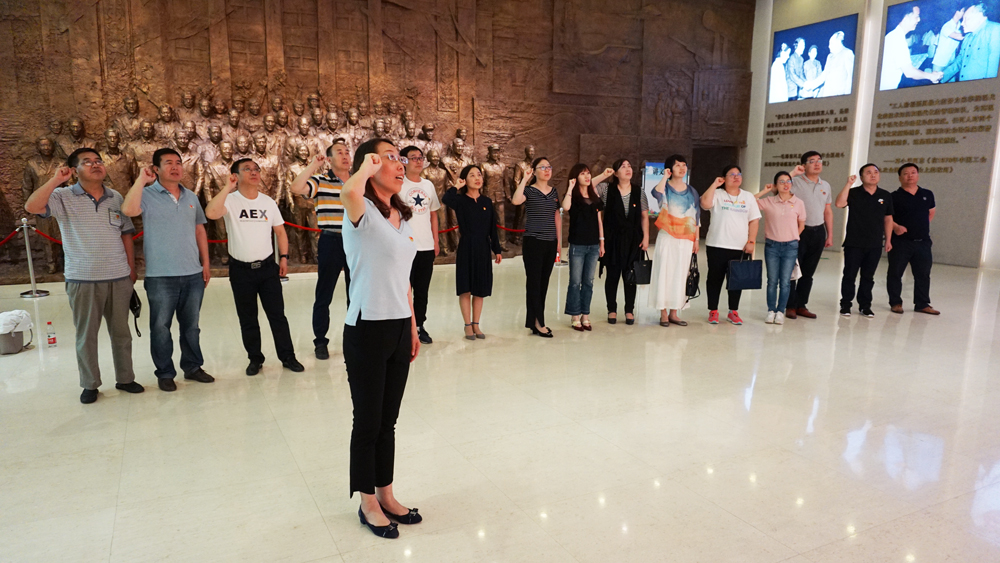 在馆内的共享大厅,怀着对劳动模范的无比敬佩之情,二支部全体党员面对党旗、高举右手,再次庄严宣誓,重温当年的决心和信念。铿锵恢宏的誓词,强烈震撼着在场的每一位党员,一字一句,神圣而豪迈,体现了党员同志们对中国共产党的无限忠诚。