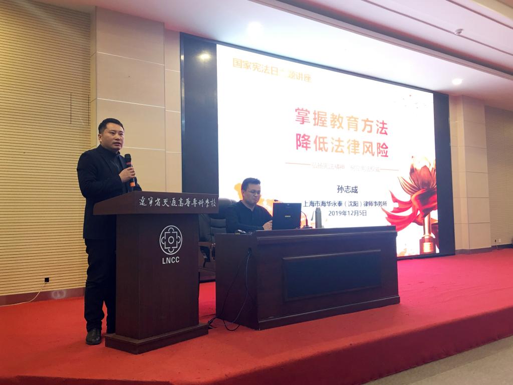 为推进校园安全建设工作,提高师生安全防范意识,构建文明、和谐、平安、稳定的校园环境,2019年12月4日、12月5日,我校学生管理处邀请上海市海华永泰(沈阳)律师事务所孙志成律师围绕学生和学生工作队伍关心的法律安全问题做了两场安全教育报告。学生工作队伍的相关领导、辅导员、班主任以及1000余名学生代表参加了此次报告会。