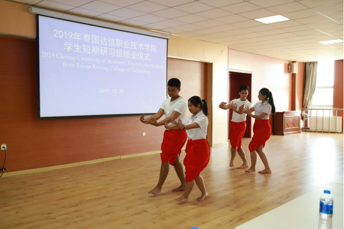 徐雅娜副校长为结业仪式致辞,她表示,泰国来访老师和同学们在20天的学习交流中,能够迅速适应环境差异,跨越语言障碍去努力学习的精神也给我校师生留下深刻印象。通过本次文化交流活动,同学们不仅吸收了知识,更新了观念,也拓展了国际视野,锻炼了才干。希望同学们能珍惜这段学习经历,在今后的生活中继续发奋求索、学有所成、学有所用,也希望他们珍惜与辽宁交专师生的友谊,并将这份友好情谊传播四方,以此促进中泰两国友好关系。最后,徐副校长希望来访学生未来能够重回交专继续深造。