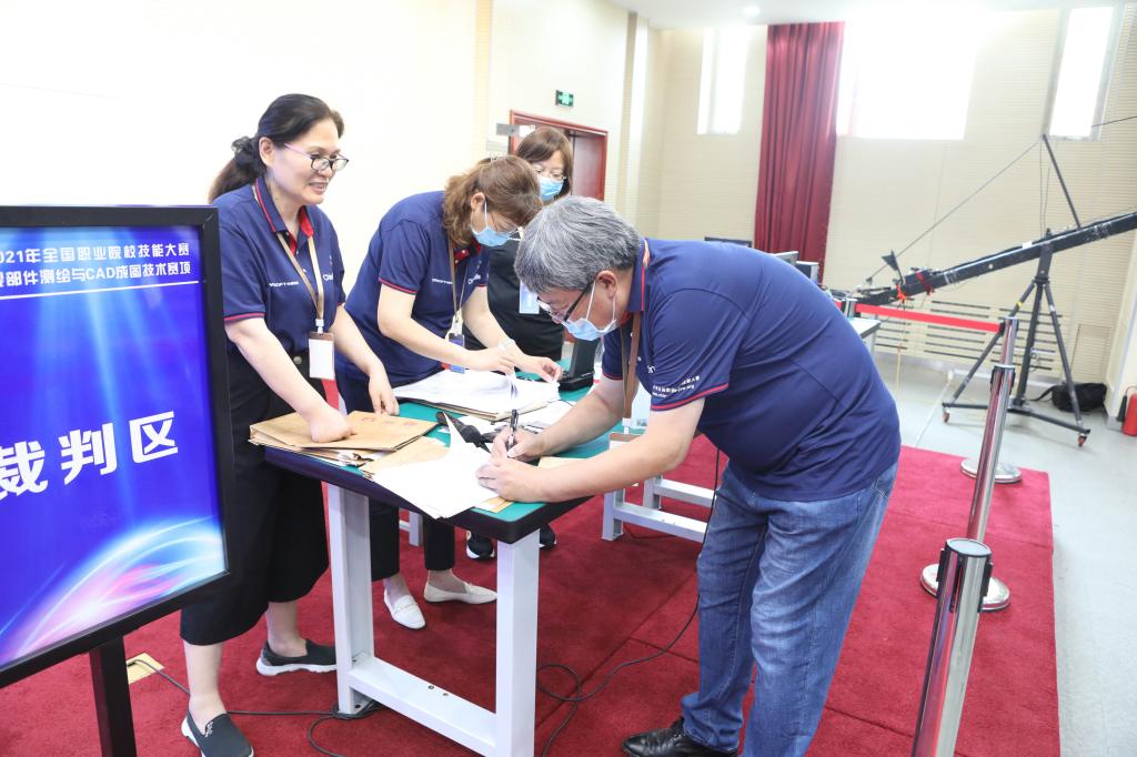 本次技能大赛对接国际主流生产技术,借鉴世界技能大赛同类竞赛项目的竞赛规程与评分标准,竞赛总时长 7.5 小时,以个人赛方式进行,要求选手们以现场操作的方式完成零部件测绘与质量检测、工程图审核与结构优化、机械产品工程图设计、机械产品三维模型设计和职业素养等五个竞赛模块,主要考察选手在零部件测绘与 CAD 成图技术方面的专业知识与技能、职业素养等综合能力水平。比赛过程中,各参赛队员沉着冷静、奋力拼搏,展示了较高的专业技能和职业素养,赛出了水平、赛出了风格、赛出了精神。
