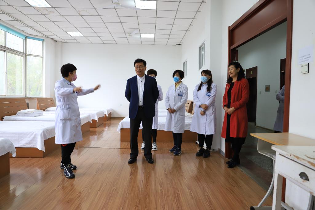 2021年5月12日上午,校党委书记张亚军来到校卫生所,亲切看望我校医护人员。