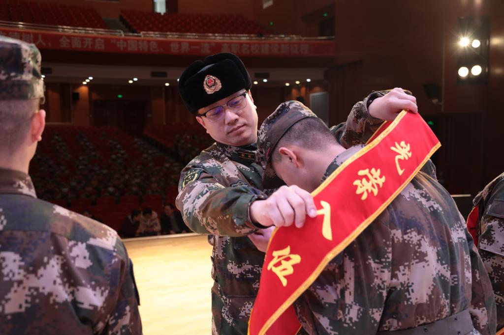 武警辽宁省总队人力资源处干事李春辉代表武警总队,对即将成为武警战士的379名士官学员表示衷心的祝贺,并向多年来为武警部队人才培养工作付出辛勤汗水的我校老师表示诚挚的感谢。李春辉对士官学员提出三点要求,一是要自觉服从组织需要。要发扬革命军人敢于吃苦、乐于奉献的优良传统,以蓬勃的朝气、昂扬的斗志迎接第一任职,主动接受锻炼,增长才干,为实现长远发展蓄势积能。二是要努力提升自身素质能力。要以任职岗位为平台,时刻瞄准科技发展前沿,紧跟部队建设步伐,以时不我待的紧迫感加强学习和工作实践,虚心向部队官兵请教,努力提升综合素质,弥补短板,夯实基础。三是要主动适应部队环境。要尽快学习熟记部队的各项纪律规定,强化纪律意识,自觉遵章守纪,注重日常养成,坚持从小事做起,从点滴入手,不断培养优良作风,时时处处表现出良好的组织纪律观念和朴素庄重、威武刚健的军人气质,尽快实现普通大学生向合格武警战士的转变。