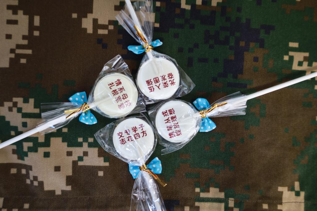 一支支小小的棒棒糖,是母校老师对你们满满的祝福:希望每一位士官学子都要身体棒棒,工作棒棒!
