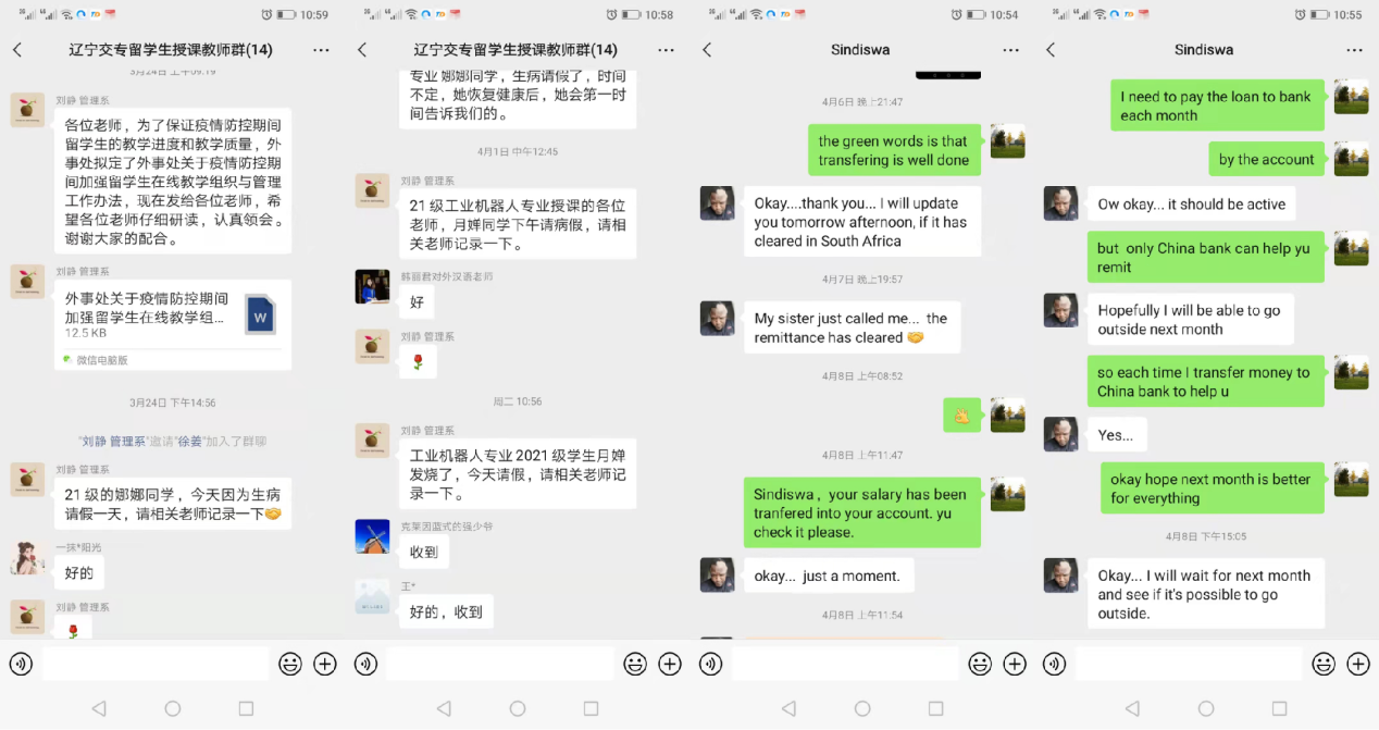 我校外籍教师NGEMA SINDISWA MUELO表示,疫情期间学校对他给予了很多工作和生活上的关注和帮助,他对学校工作人员和学生非常感激,在这里工作让他感到安全和幸福。泰国留学生非常感谢学校老师给予他们的关心和照顾,虽然身在异国他乡,但在这里能感觉到家一样的爱护和温暖,他们非常愿意配合学校防疫工作,希望与中国师生共同战胜疫情。