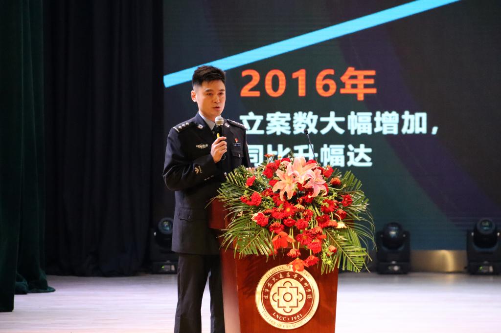 岳贵鑫副书记代表学校在致辞中介绍了我校在保障学生安全、提高学生防范意识,维护学生权益以及法治宣传、校园反诈等方面的工作,并表示将继续做好高校法治宣传教育工作,共同筑牢高校反诈“防火墙”。