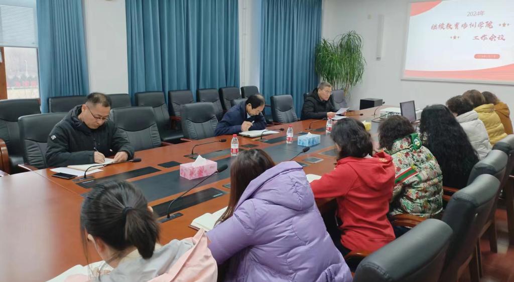 3月11日上午,在综合办公楼317会议室召开2024年度继续教育培训学院工作会议。学校党委书记任冰、继续教育培训学院全体教职工参加会议。会议由继续教育培训学院院长李东和主持。