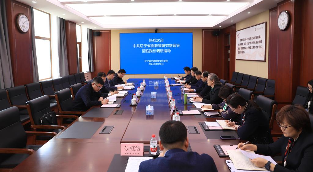 2024年4月18日,中共辽宁省委政策研究室一级巡视员杨正华、文化和社会建设研究处处长田宇峰、副处长孙晶皓、四级主任科员乔麦一行4人莅临我校,就深化产教融合、服务辽宁振兴新突破和推动职业教育高质量发展等工作进行深入调研。