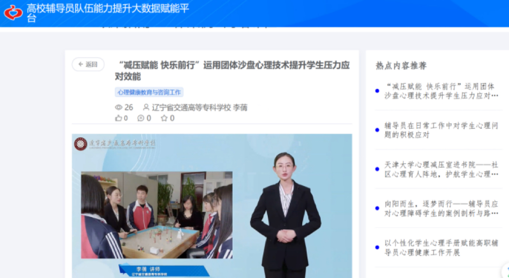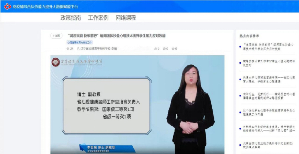 我校学生工作处心理健康教育教研室主任李良敏、管理工程系心理专项辅导员李蒨合作完成的微课作品《“减压赋能 快乐前行”运用团体沙盘心理技术提升学生压力应对效能》入选教育部高校辅导员队伍能力提升大数据赋能平台。