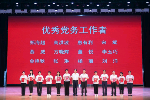 学校党委委员、副校级调研员张殿栋宣读了《关于表彰优秀共产党员、优秀党务工作者和先进基层党组织的决定》,任冰书记为获奖的优秀个人和先进集体颁发荣誉证书和奖牌。