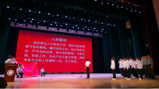 党委书记任冰带领2024年新发展党员代表举行新党员入党宣誓仪式,全体党员重温入党誓词。