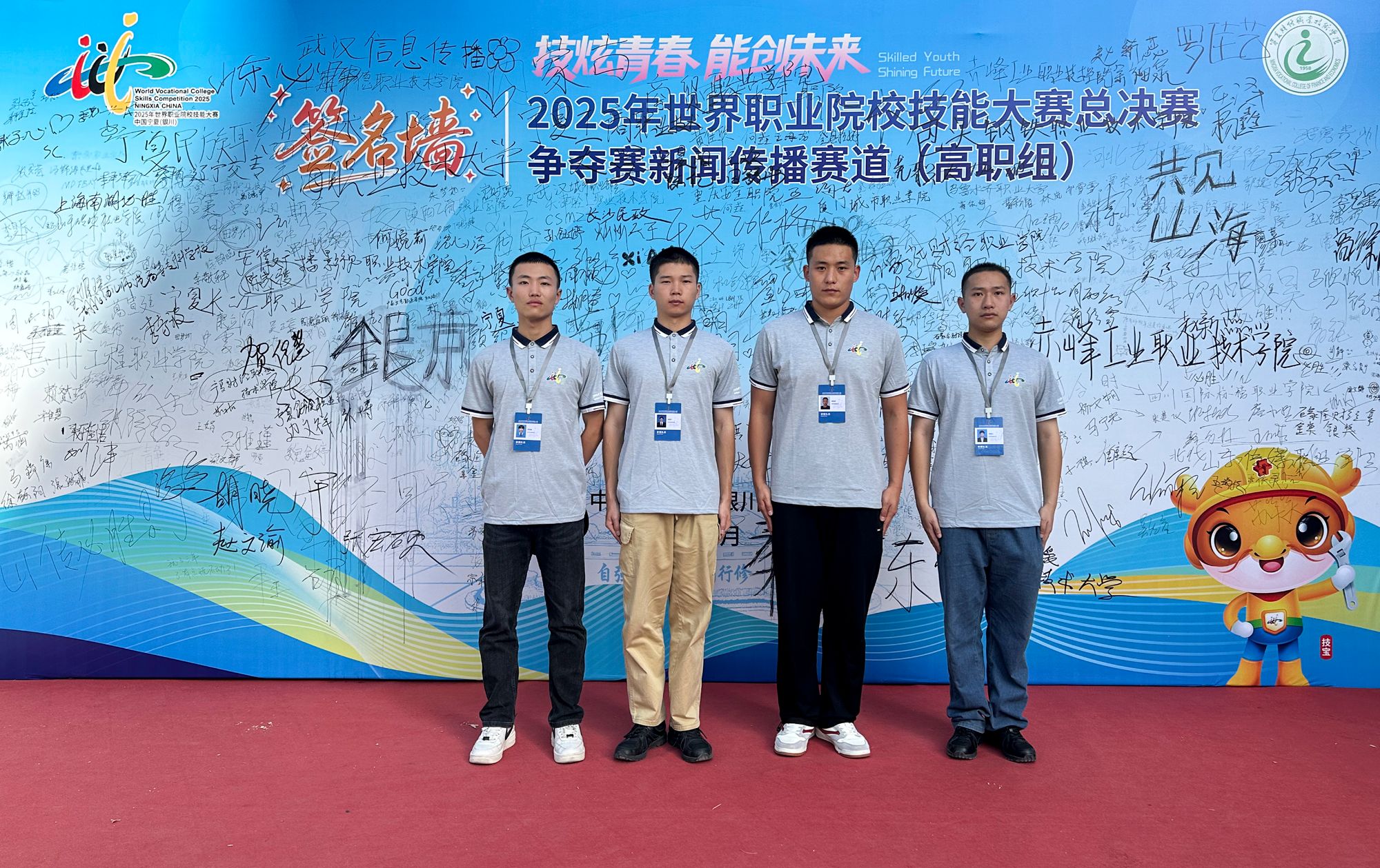 由我校信息工程系马洪伟、张爽两位老师指导的影视动画专业2023级蔡博文、穆怡玺,2024级李承翰、易涵宇四位同学组成参赛团队,获得2025年世界职业院校技能大赛总决赛争夺赛新闻传播赛道(高职组)银奖。