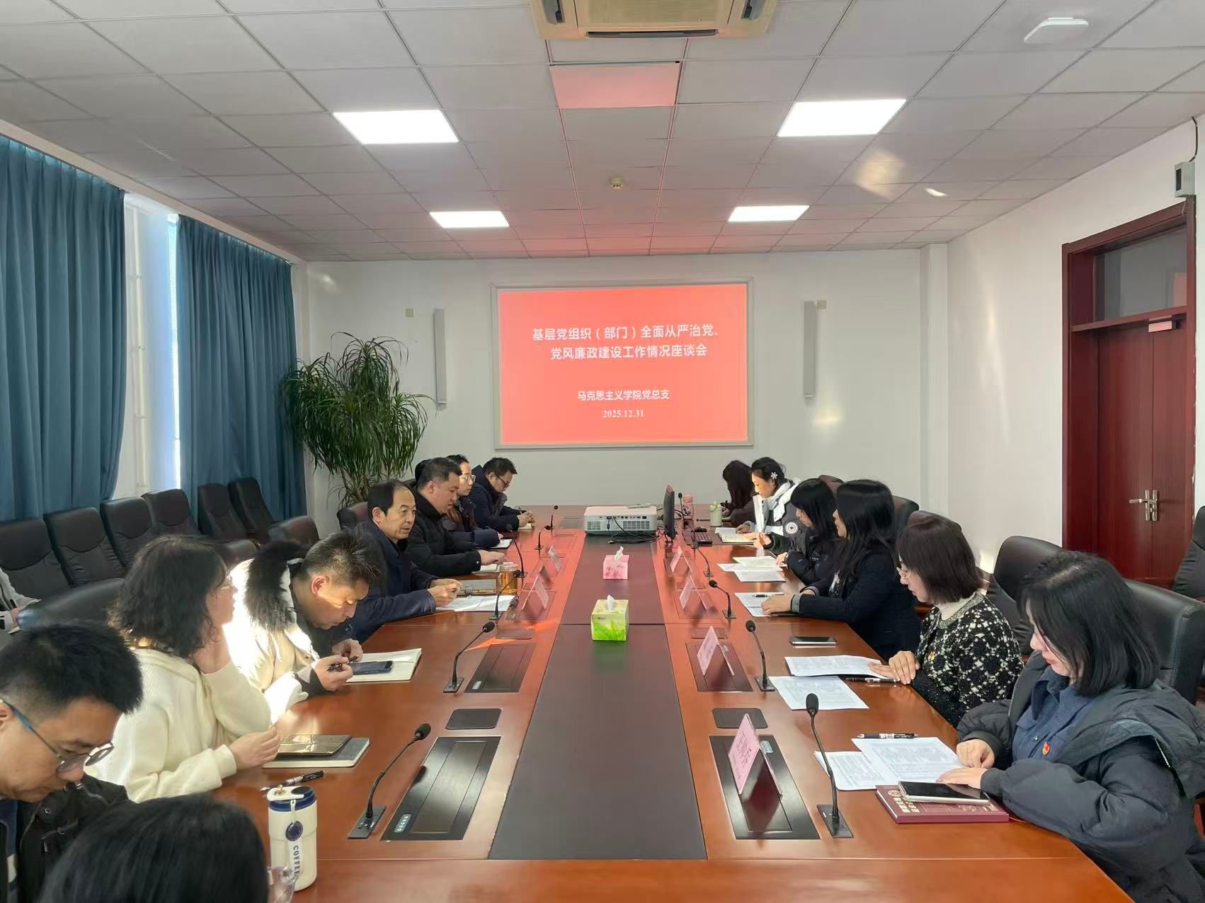 为深入贯彻落实学校党委关于全面从严治党的决策部署,掌握基层党组织落实全面从严治党主体责任、推进党风廉政建设的工作成效及存在问题,推动管党治党责任层层压实、政治生态持续向好,12月31日,党委书记任冰带队赴马克思主义学院开展工作专题调研。党委组织部副部长吴哲陪同调研。