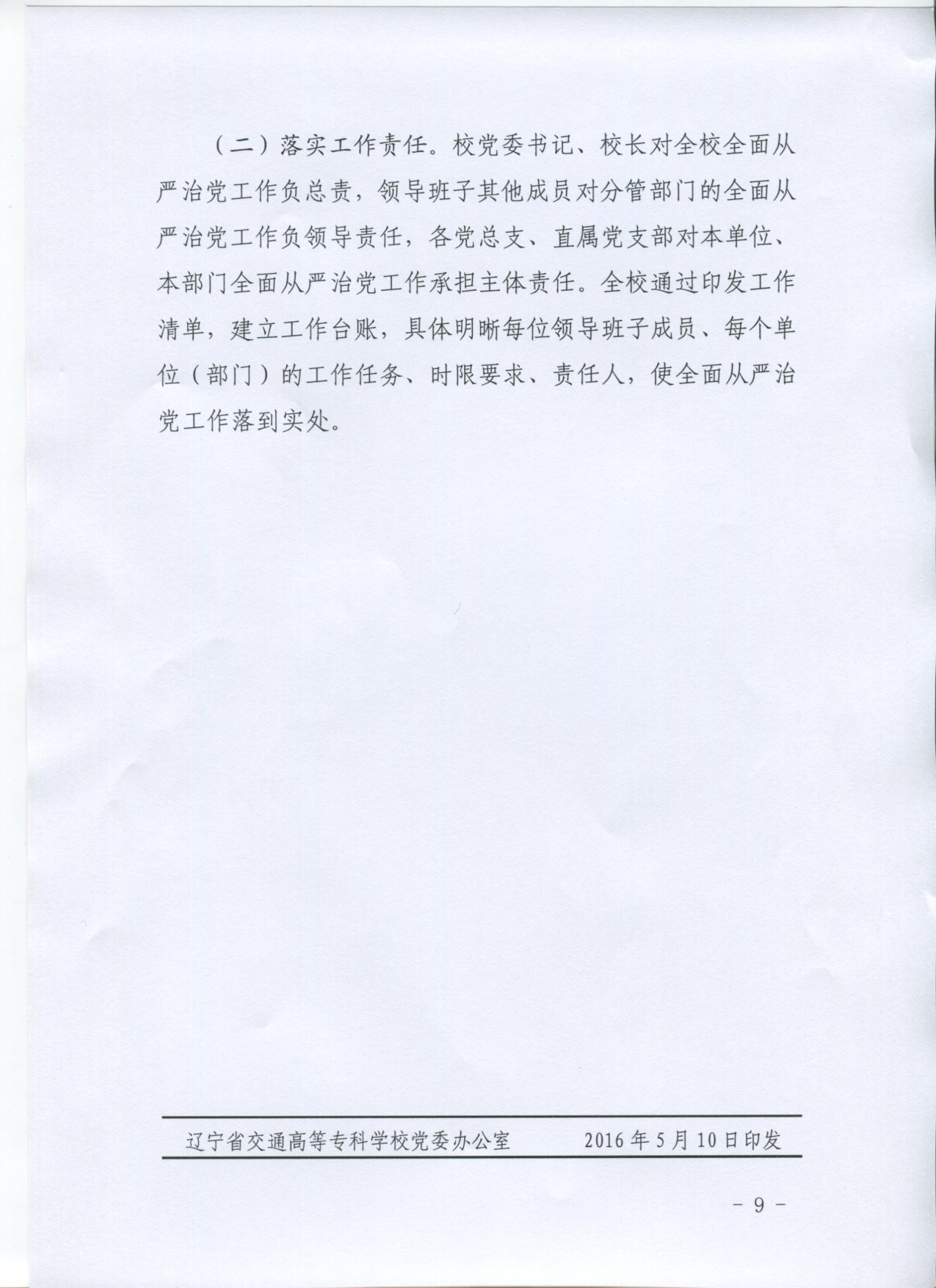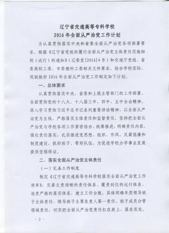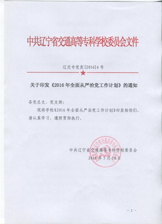 关于印发《2016年全面从严治党工作计划》的通知