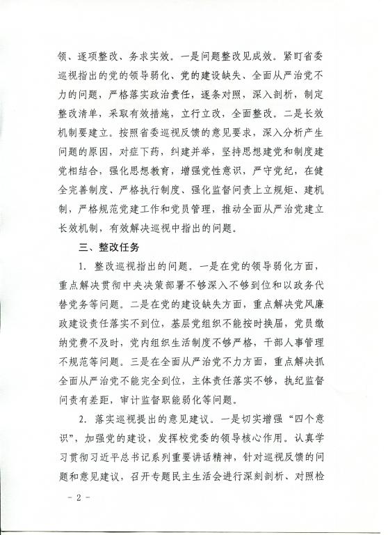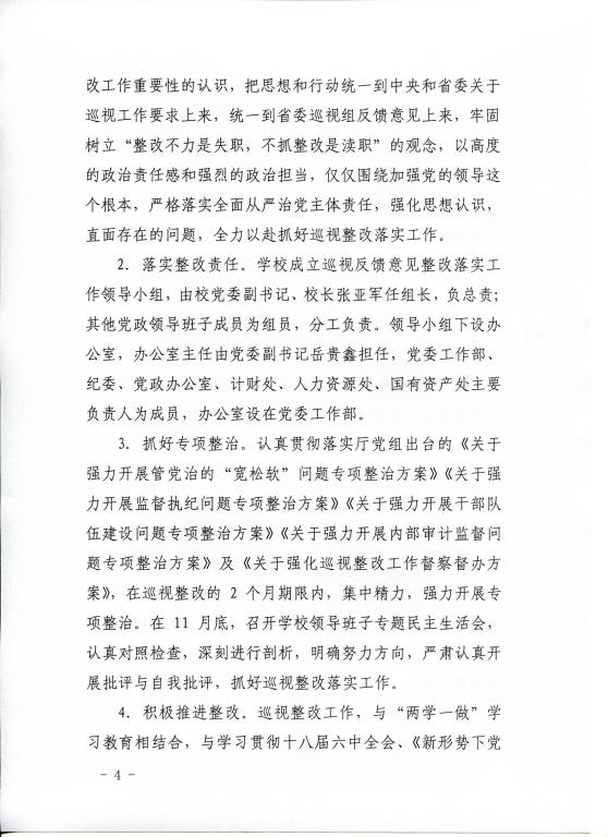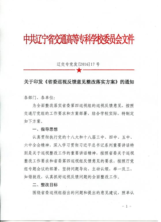 关于印发《省委巡视反馈意见整改落实方案》的通知