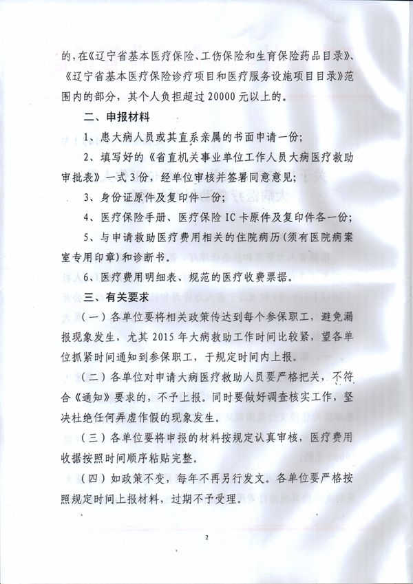 根据省人社厅、省财政厅《关于调整省直机关事业单位工作人员大病医疗救助办法的通知》(辽人社【2012】319号)和《辽宁省人力资源和社会保障厅政务公开行政权力事项》精神,省社保局将开展2016年度省直机关事业单位工作人员大病医疗救助工作。具体申报范围、申报材料和相关要求详见文件。因本次工作申报时间短暂,相关人员请于1月5日前将申报材料准备齐全,与人力资源处具体工作人员取得联系。