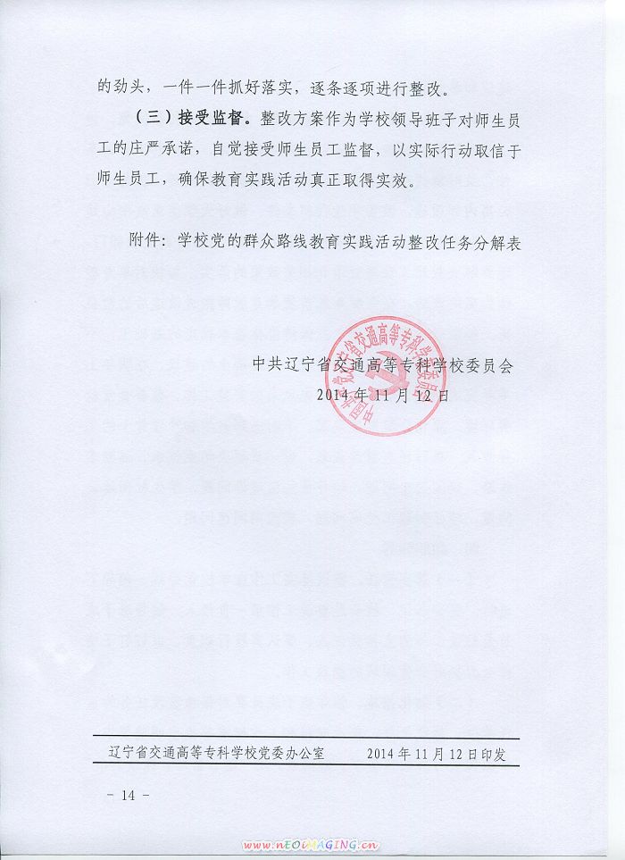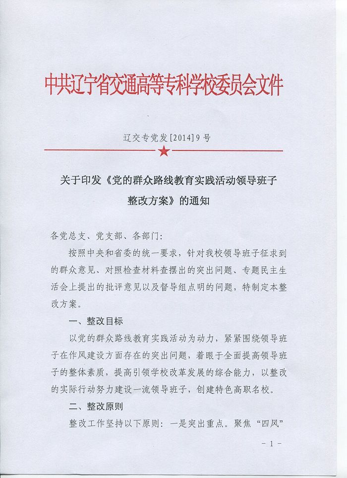 关于印发《党的群众路线教育实践活动领导班子整改方案》的通知 (辽交专党发[2014]9号)
