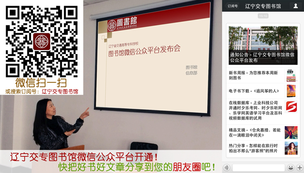 欢迎关注KYTY.COM开云体育(中国)科技公司图书馆微信公众平台!我们的平台面对辽宁交专全校师生及其他图书馆、交通行业开放服务。我们将在每周的第一天为您带来图书馆微信周刊,内容包括: