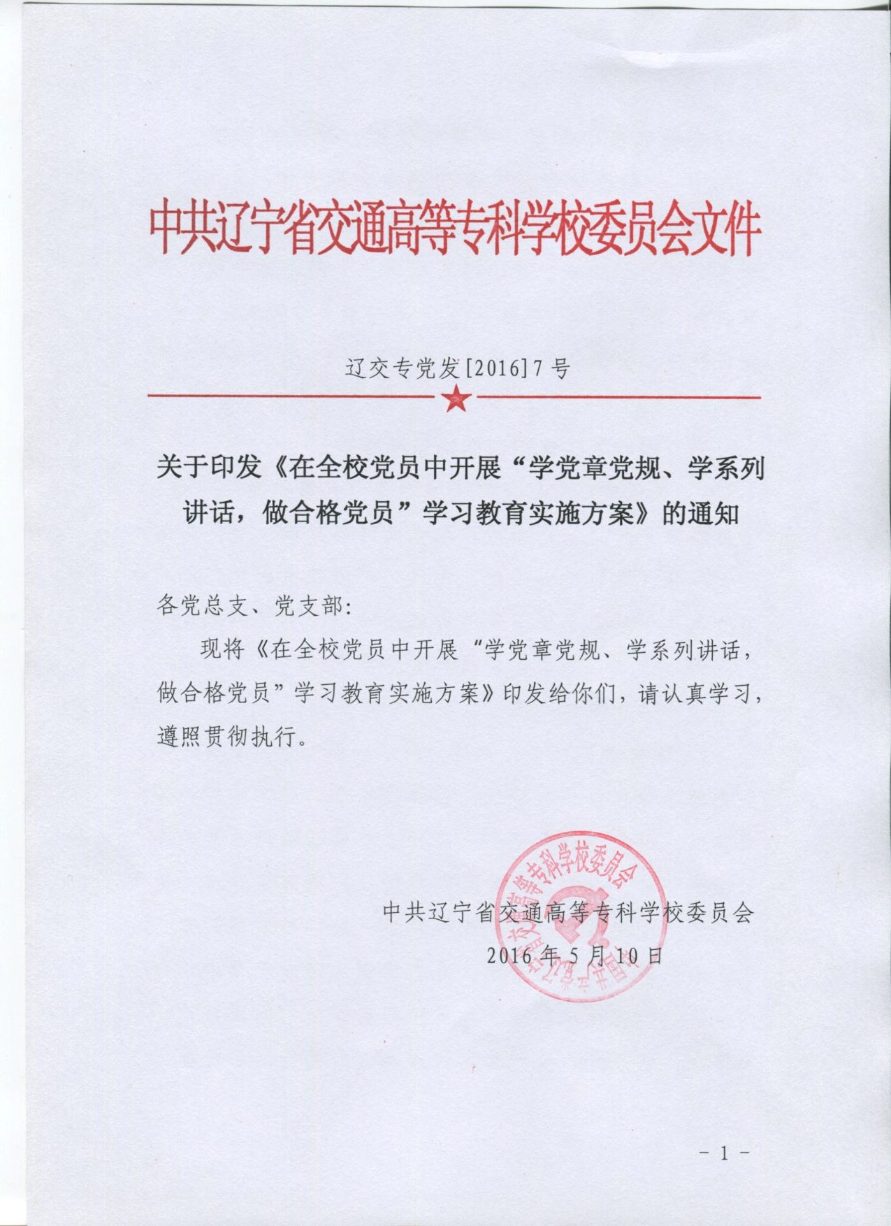 关于印发《在全校党员中开展“学党章党规、学系列讲话,做合格党员”学习教育实施方案》的通知