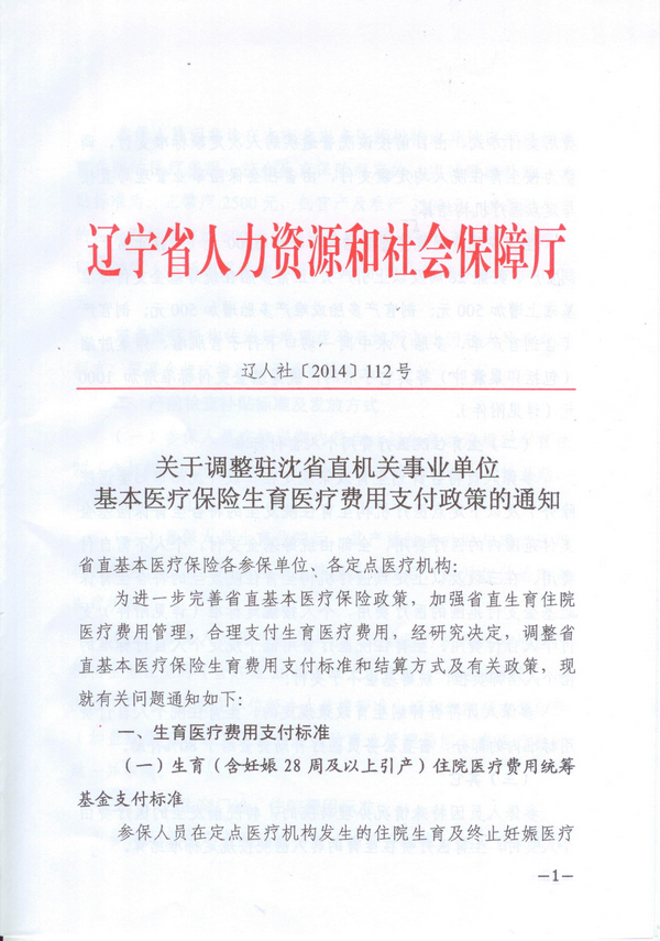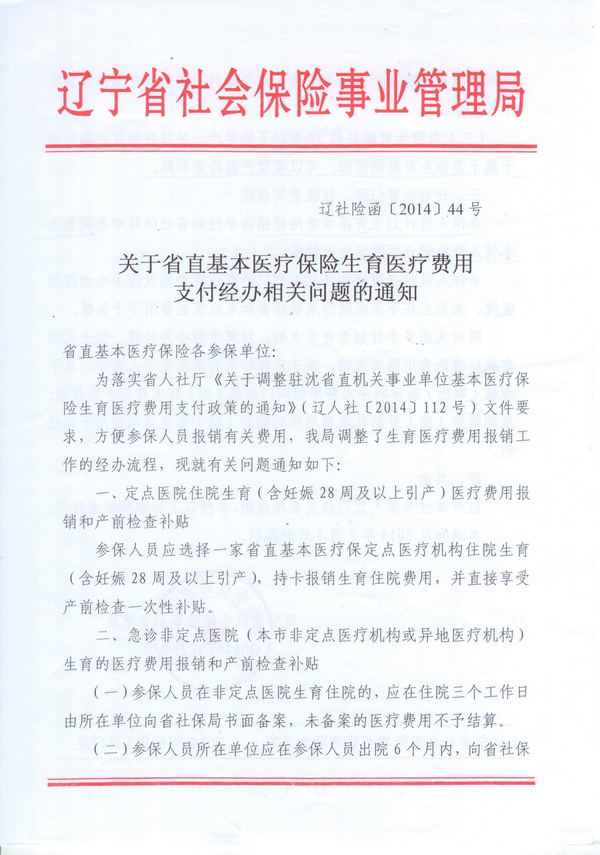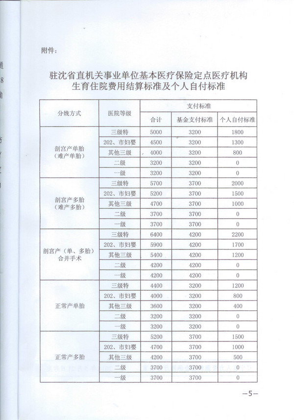 关于调整驻沈省直机关事业单位基本医疗保险生育医疗费用支付政策的通知