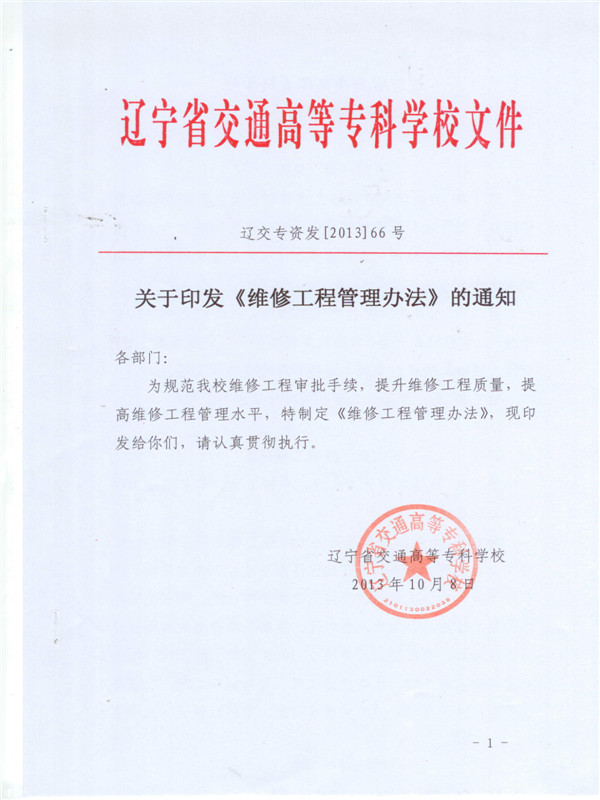 关于印发《维修工程管理办法》的通知