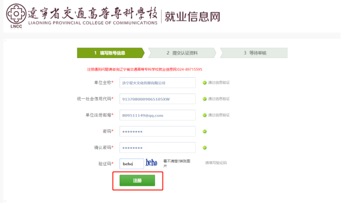 2.然后填写单位注册信息后点击注册按钮。