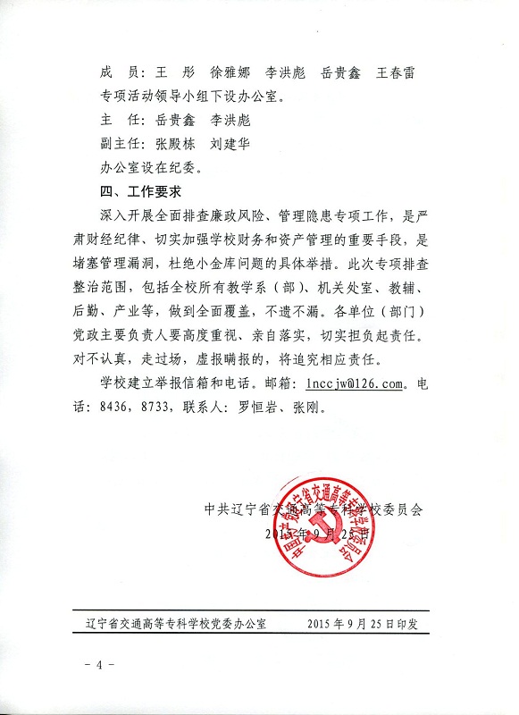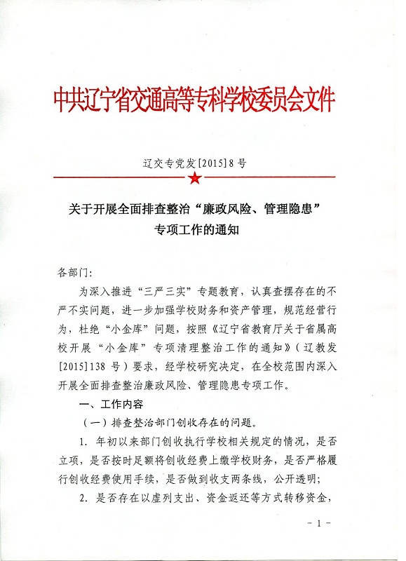 关于开展全面排查整治“廉政风险、管理隐患”专项工作的通知