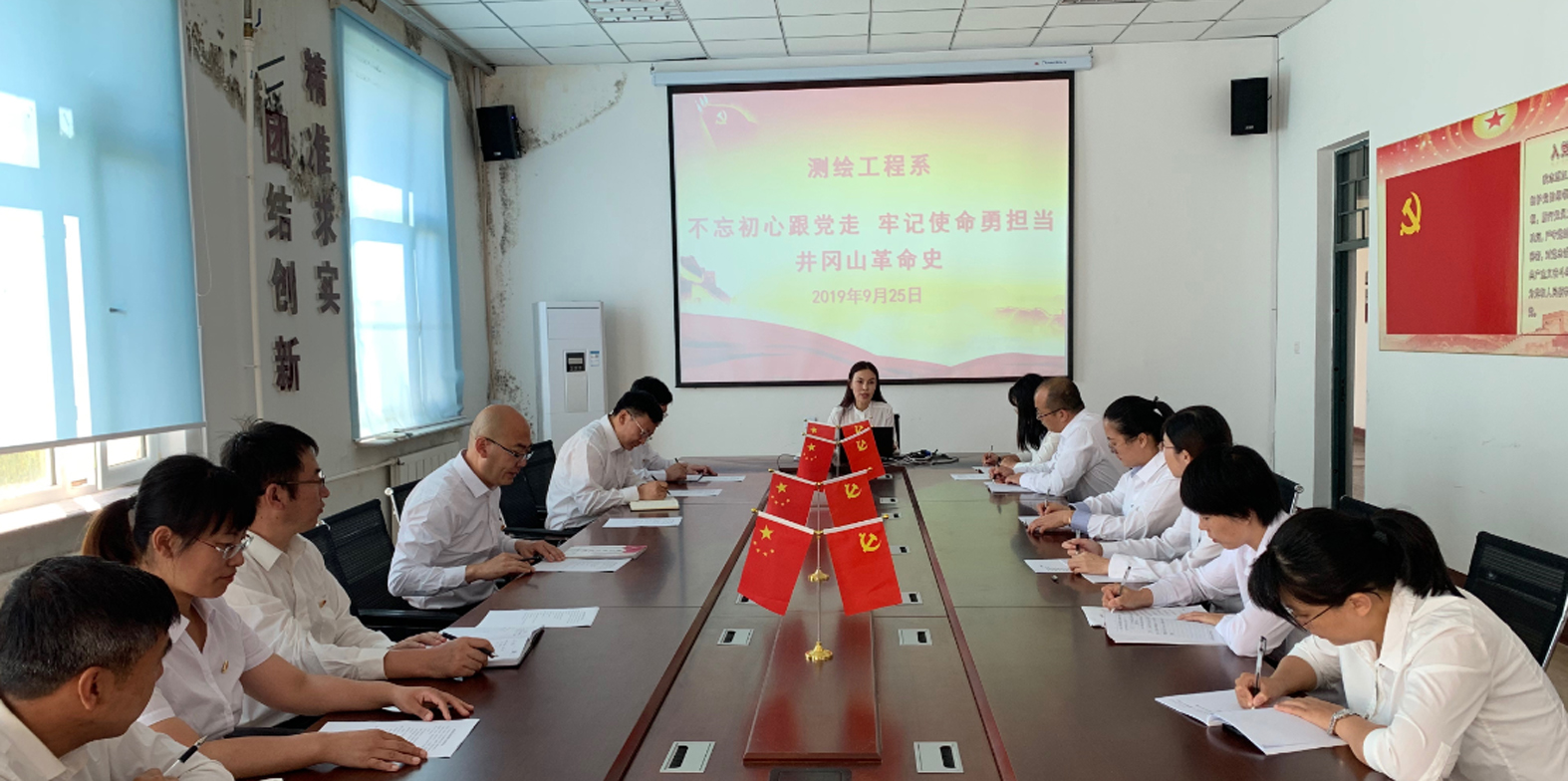为了迎接建国70周年,弘扬爱国主义精神,增强党性修养,牢记使命担当,2019年9月25日,测绘系组织全体教职工党员在四楼会议室召开“不忘初心跟党走,牢记使命勇担当”主题党日活动。