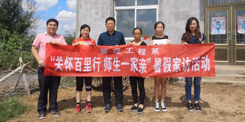 为详细掌握困难学生家庭情况,确保大学生奖助学金发放的精准性,构建家校合力培育贫困学生成长的机制,2019年8月15日,在系党总支书记富浩带领下,总支副书记张宁、辅导员孟繁浩、许晨曦、李蒨组成家访队伍,到阜蒙县2个贫困学生家慰问、调研。