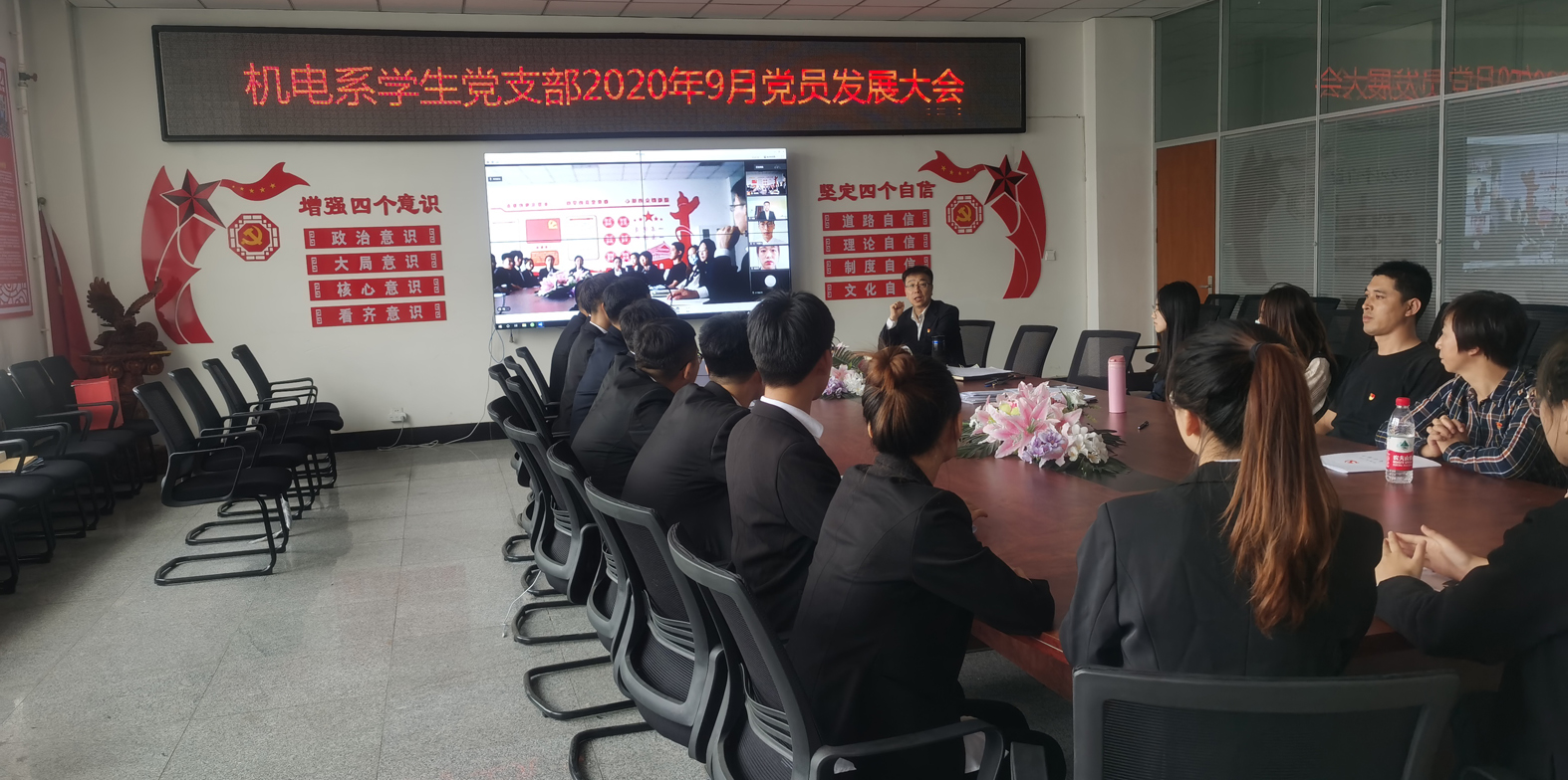 2020年9月18日,在这个特殊的日子里,机电系学生党支部党员发展大会在机电系406会议室召开。支部本着吸纳优秀学生的原则,来壮大党员队伍,为支部将来的发展打下坚实的基础。大会由支部书记王喜华主持,参加此次大会的,还有总支书记赵波老师、专职组织员郭妍老师、支部六位成员及拟发展的17名发展对象。
