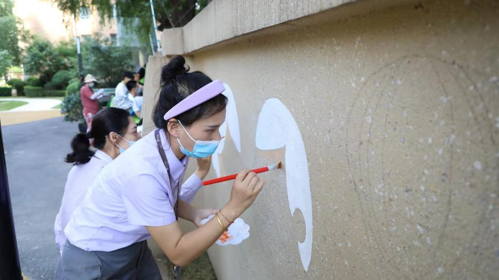 信息工程系影视动画专业致力于培养影视动画专业人才和武警部队优秀专业士官,在多年的学生培养过程中,打造了一批技术过硬、素质优良的专业人才和士官人才,同时,信息工程系也很注重学生社会素养的提升,6月19日,在专业外聘教师金婷老师的带领下,影视动画工作室12名学生来到了位于沈阳市沈河区的华润置地润馨汇康养中心,为中心康养的老年人们绘制墙画。