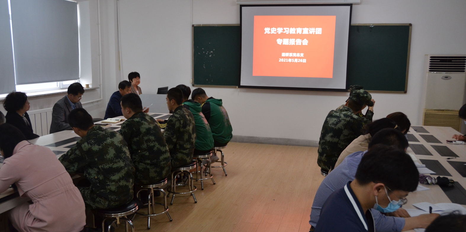 为深入学习党史,深刻领悟党在长期革命斗争中形成的红色精神,2021年5月26日,道桥系邀请校党史宣讲团成员思政部董悦主任做党史学习教育宣讲报告,报告在道桥系项目管理实训室举行。系班子成员、全体党员教师、学生党员代表聆听了本次报告。
