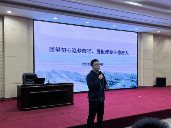 随后,由汽车工程系樊亚明老师做《回望初心追梦前行,勇担使命立德树人》辅导员素质能力提升培训心得分享。