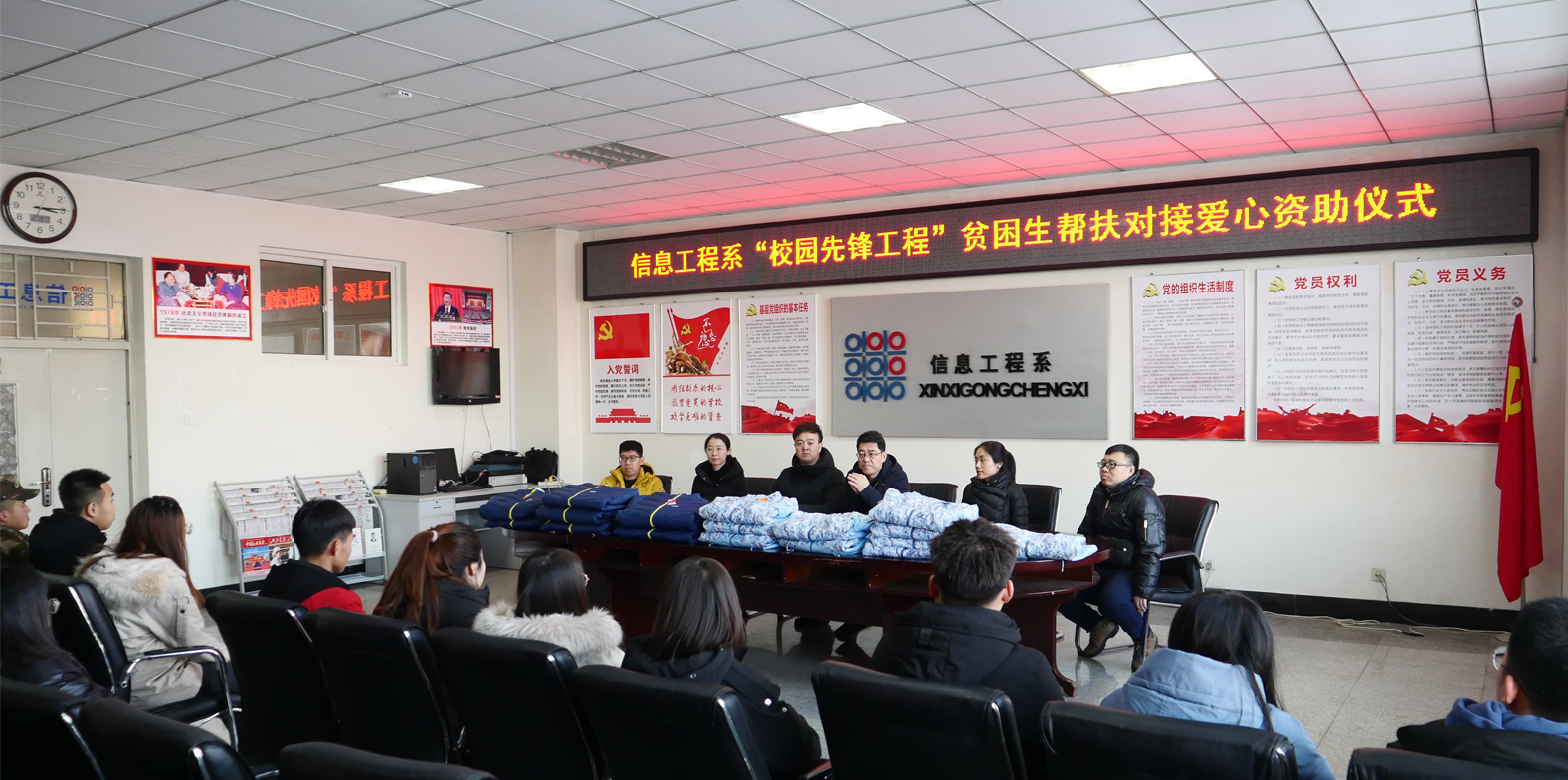 信息工程系为扎实推进“校园先锋工程”,切实做好贫困学生的爱心帮扶对接工作,2019年12月20日,信息工程系党总支开展贫困生爱心帮扶对接活动。