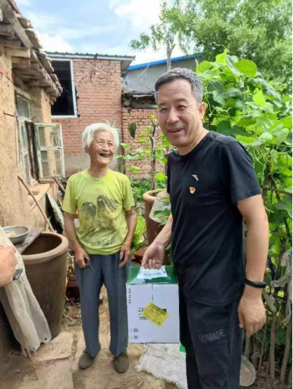 村委会对志愿服务队的到来表示深深地感谢,在村主任袁晓东和村组织委员(代理书记)肖凤阳的引导下,志愿者们走访了村里的每一位孤寡老人,与老人们亲切交谈,了解他们的生活,并为他们送去大米、白面,牛奶和豆油等生活必备物资。每到一户,党总支书记宋斌,副书记王喜华都对老人嘘寒问暖,询问老人的饮食起居,生活中存在的一些困难,并表示会进行长期的帮扶,以实际行动改善老人的生活质量。老人们看到这么多人来探望他们,都很高兴,有的老人非常热情地拿出自家产的杏子分给大家吃,家中不时发出欢声笑语,看到老人们开心地笑了,志愿者们也笑了。
