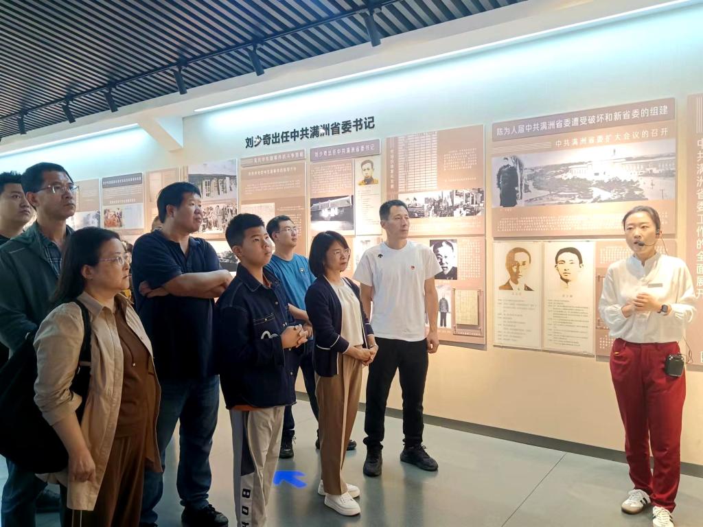 随后,教师党员乘车来到中共满洲省委旧址纪念馆参观学习。中共满洲省委成立于1927年10月,是中国共产党在东北设立的第一个最高的统一领导机构,是中国共产党在东北的革命源头和摇篮。走进纪念馆,支部党员认真聆听革命史料讲解,参观“学党史、悟思想、办实事、开新局”主题展览,瞻仰中共满洲省委旧址和刘少奇旧居等革命遗址和文物史料,观看“沈阳地区隐蔽斗争历史展”。在讲解员饱含深情的讲解下,党员们都被革命先辈的战斗经历和英勇事迹深深感染。