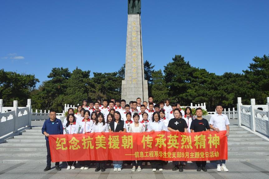 今年是抗美援朝胜利70周年,为弘扬抗美援朝精神,致敬缅怀先烈,积极响应学习贯彻习近平新时代中国特色社会主义思想主题教育中“学思想、强党性、重实践、建新功”的总要求,利用辽宁红色教育资源,深挖“六地”精神内涵。9月20日,信息工程系学生党支部前往沈阳抗美援朝烈士陵园参观学习,全体师生参与。
