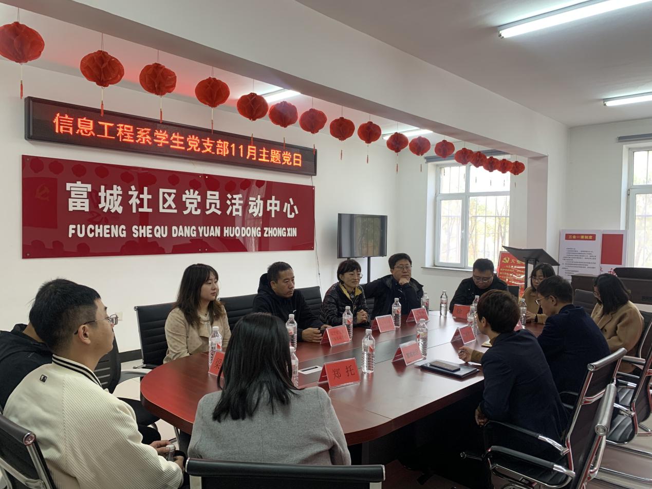辽宁是雷锋精神发祥地,为号召我系学生践行雷锋精神,磨练技术本领,提升服务意识,加强我系与对接社区党建共筑共建工作,11月1日,信息工程系学生党支部前往沈阳富城社区开展“践行雷锋精神,助力社区服务”主题党日活动,学生支部全体师生参与。