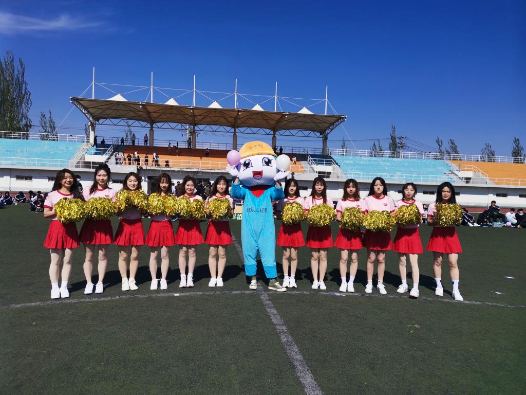 由我系学生自主设计的吉祥物“小筑”和12名女生表演的啦啦操迅速燃起现场的气氛。挥舞的双手,灿烂的笑脸,在青春的节拍中,彰显着自信和朝气。