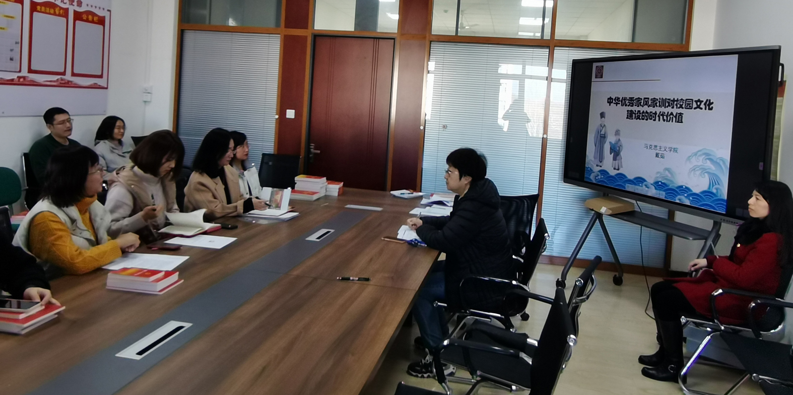 在开展主题党日过程中,党支部宣传委员戴茹同志以中华优秀家风家训对校园文化建设的时代价值为主题为全体党员上了一堂精彩党课。