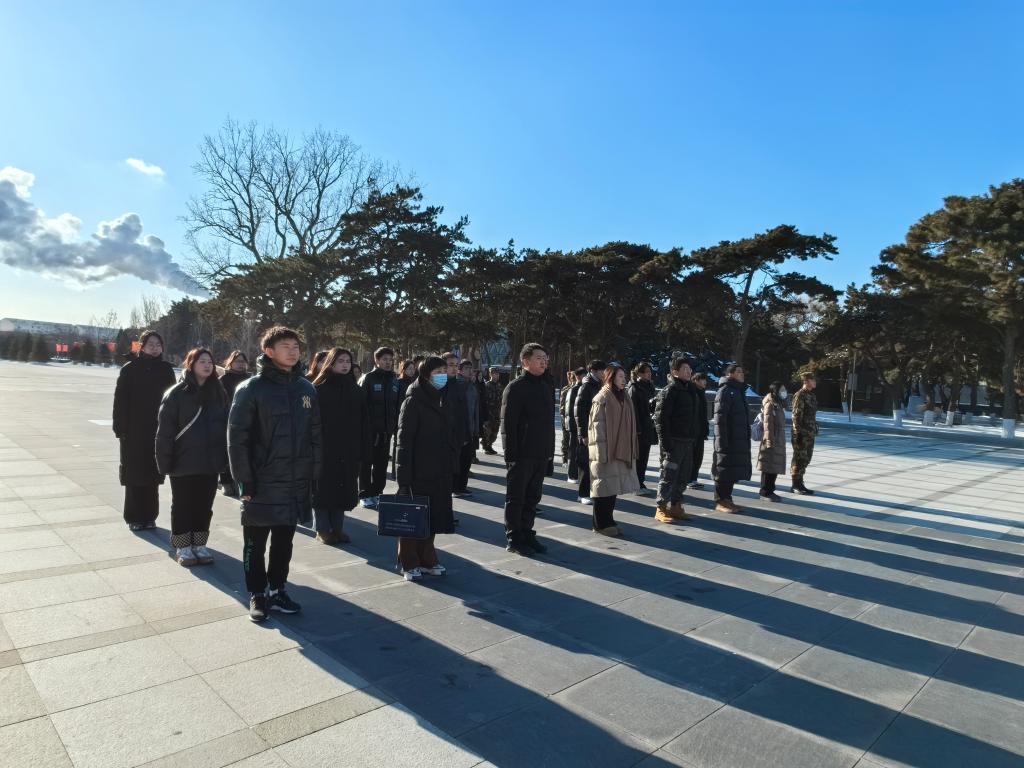 活动伊始,预备党员代表敬献花圈,全体师生在巍峨的抗美援朝英雄纪念碑前怀着崇敬的心情,肃立默哀表达对革命先烈的深切悼念和崇高敬意。无声的三分钟,师生们沉浸式感受到那段气吞山河的壮烈历史和上下一心、同仇敌忾的中国气概、民族血性。