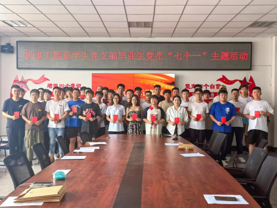 为引导毕业生党员保持先进性,发挥模范带头作用,争做“有理想、有境界、有品格、有才华”的时代青年,机电工程系学生党支部于6月28日召开2023届毕业生党员“七个一”主题活动,深化毕业生党员教育,上好毕业前最后一堂“思政课”。