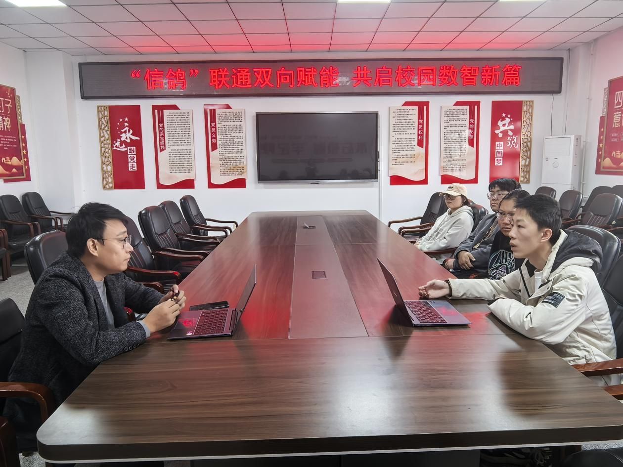 深化校园数字化服务合作、提升学生专业实践能力,培育工匠精神。10月14日下午,“小信鸽”雷锋志愿服务队与中国联通公司在A502会议室召开“信鸽联通双向赋能 共启校园数智新篇”业务洽谈会。会议由“小信鸽”雷锋志愿服务队学生负责人梁宇翔主持,团队骨干成员与联通沈北总公司经理卜龙参会。