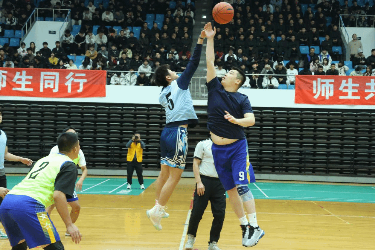 比赛进程中,双方你来我往、攻防交错,比分始终交替上升,紧张激烈的氛围让观众屏息凝神。当球员完成一次精彩的突破时,场下爆发出阵阵惊叹;当关键抢断扭转局势时,欢呼声此起彼伏;当精准远投命中篮筐时,全场更是陷入沸腾——体育馆内人声鼎沸,加油呐喊声、掌声、欢呼声交织在一起,形成一片热烈的海洋。师生们在赛场上是对手,在赛场下是伙伴,彼此的距离在并肩竞技的拼搏中、在加油喝彩的鼓励中不断拉近,深厚的师生情谊在运动中悄然升温。经过数小时的激烈角逐,最终教职工代表队以93:79的比分赢得本次友谊赛的胜利。此次师生篮球友谊赛,不仅为师生搭建了一个平等交流、切磋技艺的优质平台,更在竞技中进一步增强了团队凝聚力与协作意识。它以运动为纽带,将积极向上、奋勇拼搏的正能量传递到校园的每一个角落,让师生在汗水中释放压力,在协作中收获成长,为我校丰富多彩的校园文化生活增添了浓墨重彩的一笔,也为构建和谐融洽的师生关系注入了新的活力。
