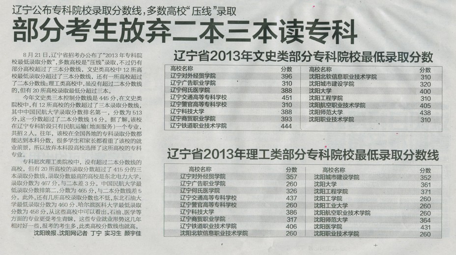 部分考生放弃二本三本考专科