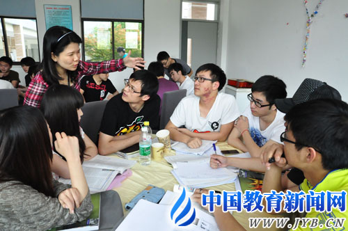 马来西亚外教在“小岛”式课堂上指导学生。