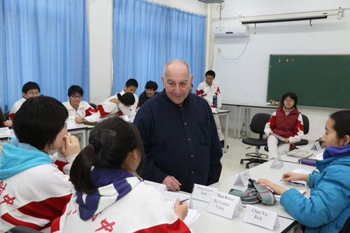 美国托马斯杰弗逊理科高中生命科学学科主任保罗博士在为人大附中学生上科学研修课。(资料图片)
