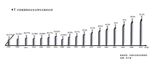 大学女生数量和比例的持续增长,是时代发展与变迁留下的印记。