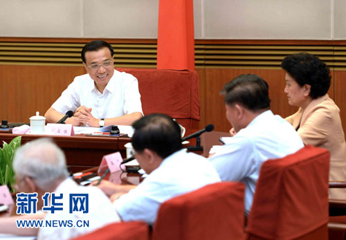 8月21日,中共中央政治局常委、国务院总理李克强在北京听取国家杰出青年科学基金设立20周年人才培养和科研成果的汇报,并同历年“杰青”基金获得者代表座谈交流。新华社记者 马占成 摄